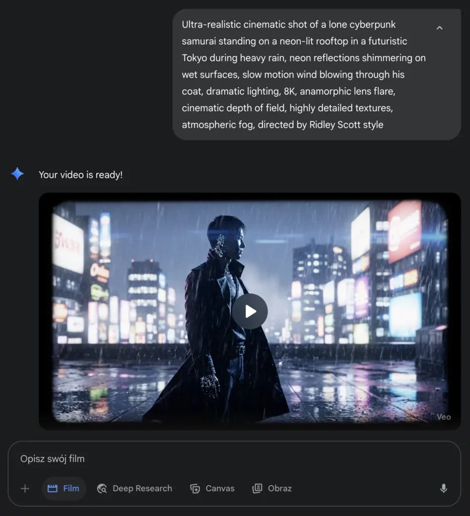 VEO 3 to zaawansowane narzędzie oparte na sztucznej inteligencji, które umożliwia automatyczne generowanie materiałów wideo o profesjonalnej jakości. Wystarczy wprowadzić krótki opis lub prompt, a VEO 3 stworzy dla Ciebie gotowy materiał wizualny, idealnie dopasowany do Twoich potrzeb.