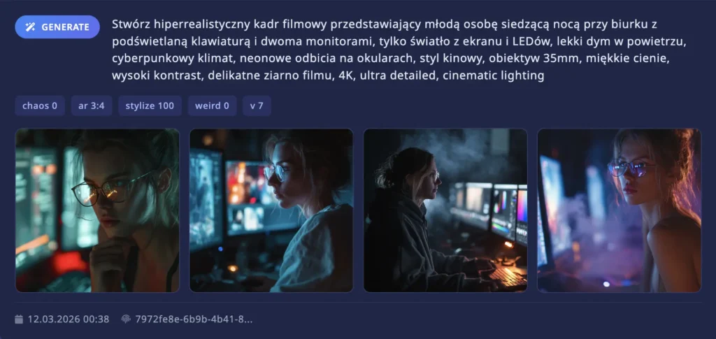 Odkryj potęgę Midjourney, jednego z najbardziej zaawansowanych i cenionych generatorów obrazów opartych na sztucznej inteligencji na świecie. Midjourney pozwala na błyskawiczne przekształcanie zwykłych opisów tekstowych w oszałamiające, fotorealistyczne grafiki, profesjonalne ilustracje i unikalne dzieła sztuki cyfrowej.